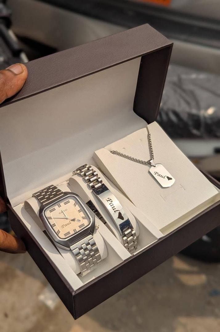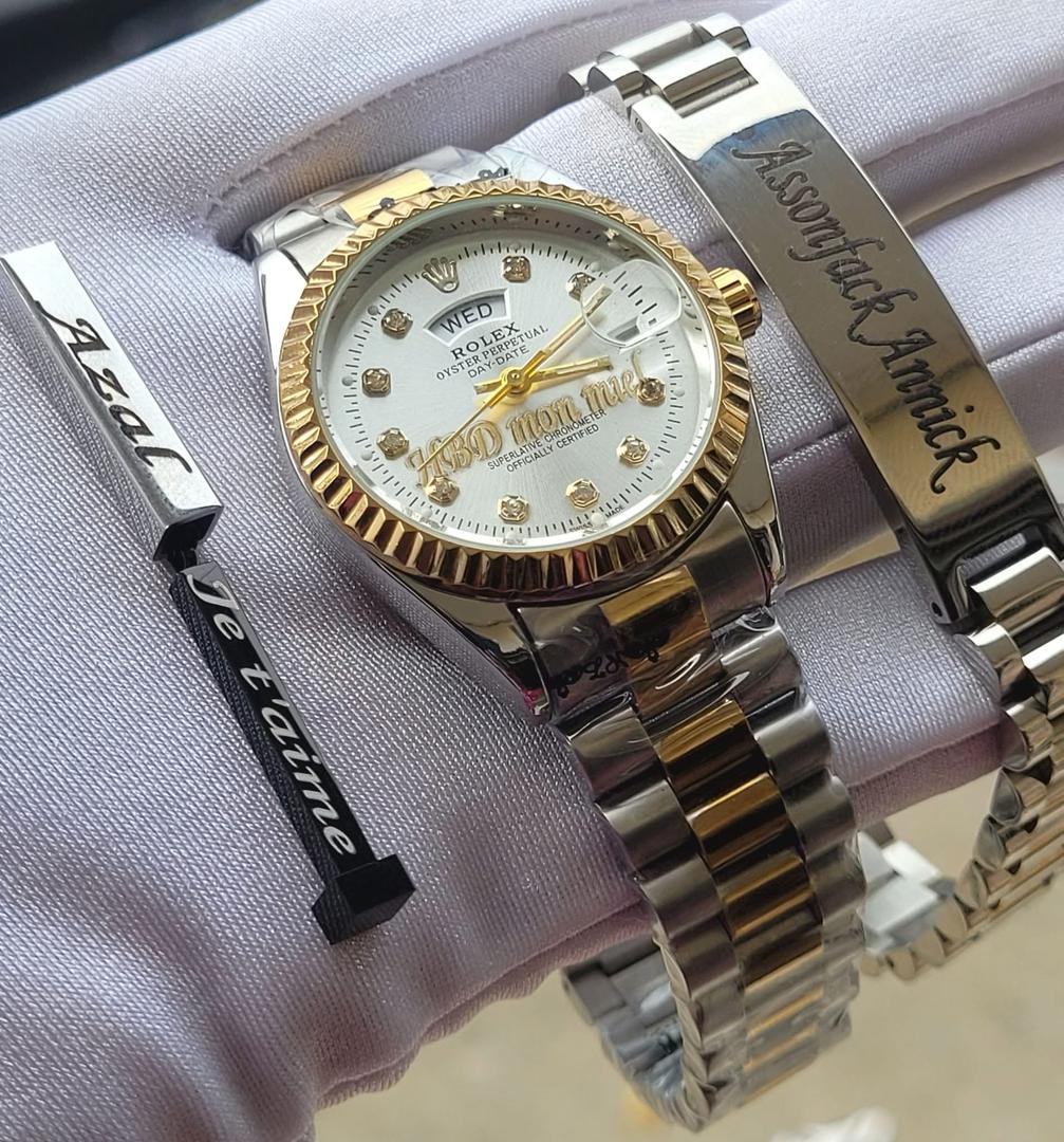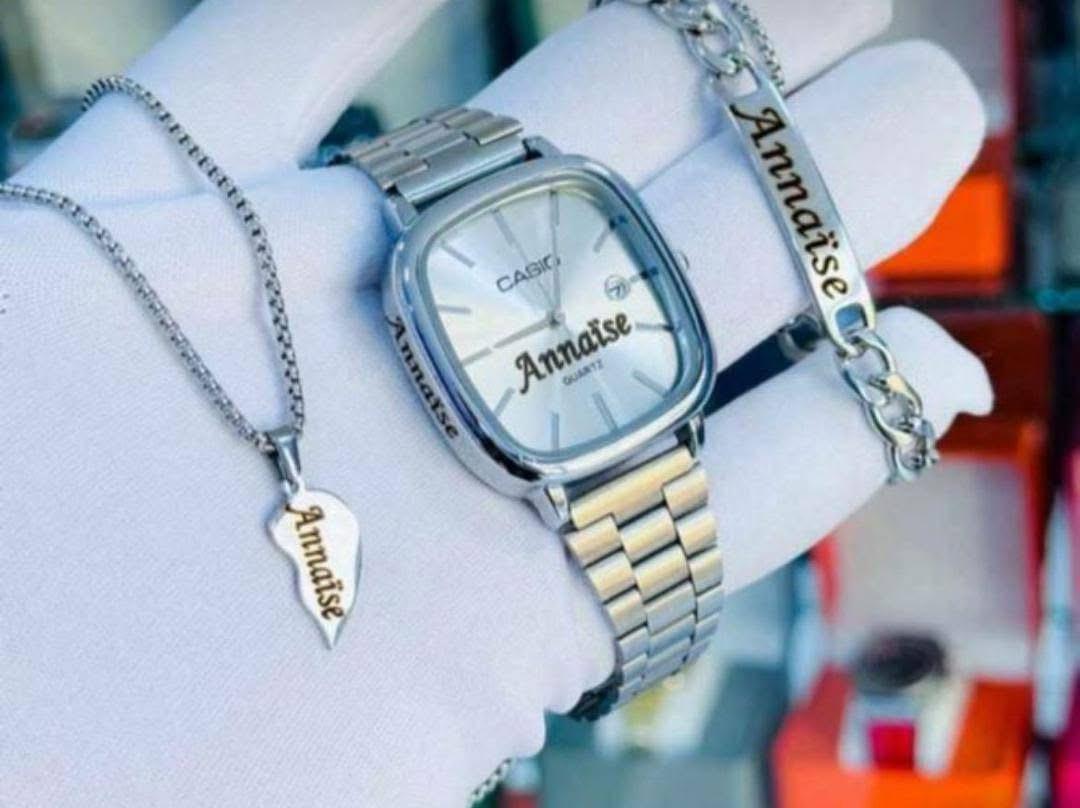 Offrons l’élégance et l’originalité avec notre pack trio de 3 en 1 chaine, montre, gourmette personnalisées gravés de qualité, que ce soit pour un anniversaire , un couple, un ami ou un maman nos création sur mesure subliment chaque moment .